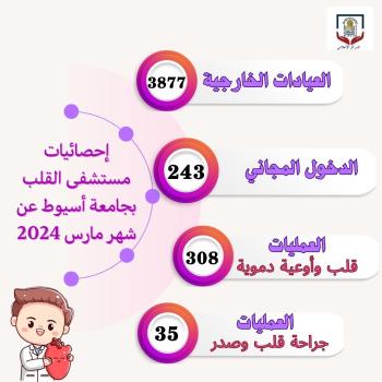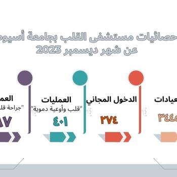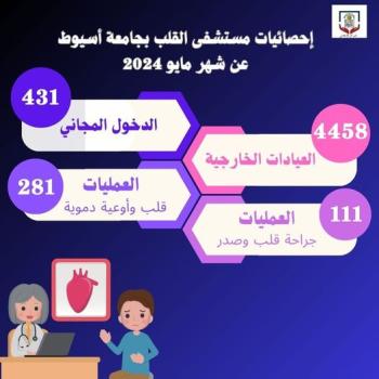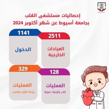 خلال شهر أكتوبر الماضي.. مستشفى القلب بجامعة أسيوط يستقبل (2511) متردداً بالعيادات الخارجية