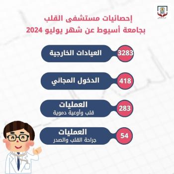 خلال شهر يوليو الماضي.. مستشفى القلب بجامعة أسيوط يستقبل (3283) متردداً بالعيادات الخارجية