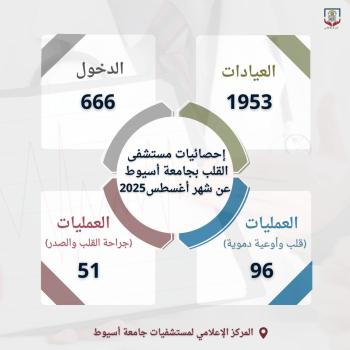 خلال يناير الماضي .. مستشفى القلب بجامعة أسيوط يستقبل (1729) متردداً بعياداته الخارجية