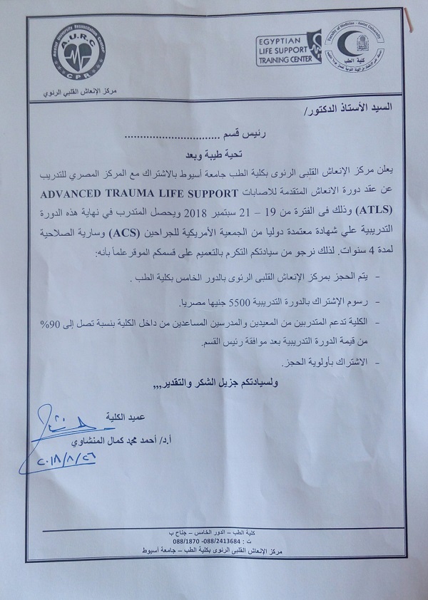 Advanced Trauma Life Support Course (ATLS) 9 September 2018 Advanced Trauma Life Support Course (ATLS)