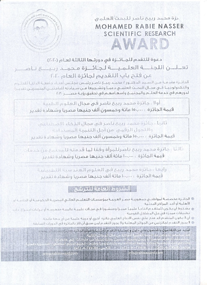 الإعلان عن جائزة الدكتور/ محمد ربيع ناصر خليفة 8 يوليو 2020 الإعلان عن جائزة الدكتور/ محمد ربيع ناصر خليفة