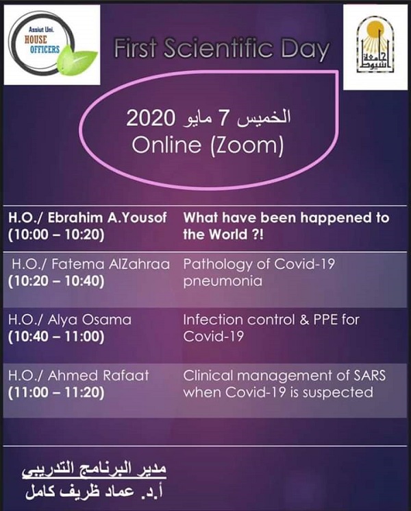 اليوم العلمي الأول لأطباء التدريب بالمستشفيات الجامعية 7 مايو 2020 اليوم العلمي الأول لأطباء التدريب بالمستشفيات الجامعية