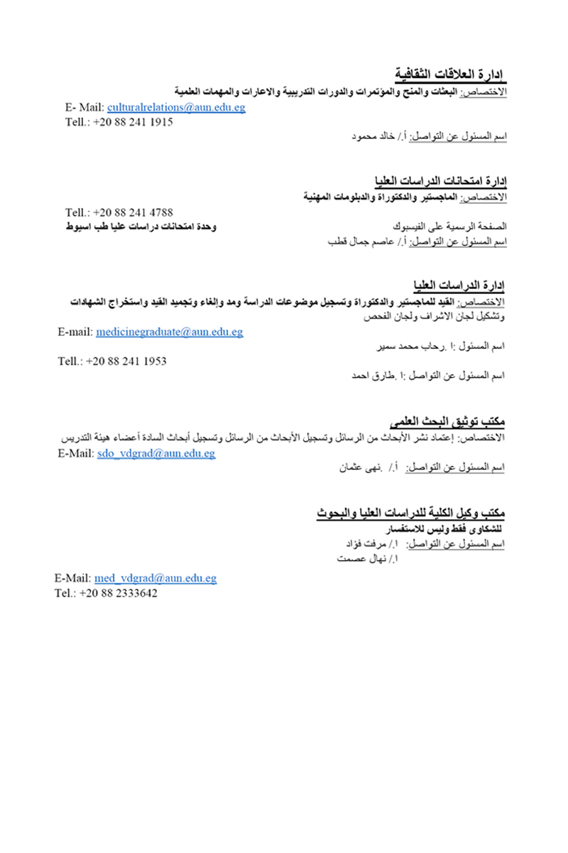 أرقام التواصل مع مكتب وكيل الكلية لشئون الدراسات العليا والبحوث والإدارات التابعة له 11 مايو 2020 أرقام التواصل مع مكتب وكيل الكلية لشئون الدراسات العليا والبحوث والإدارات التابعة له