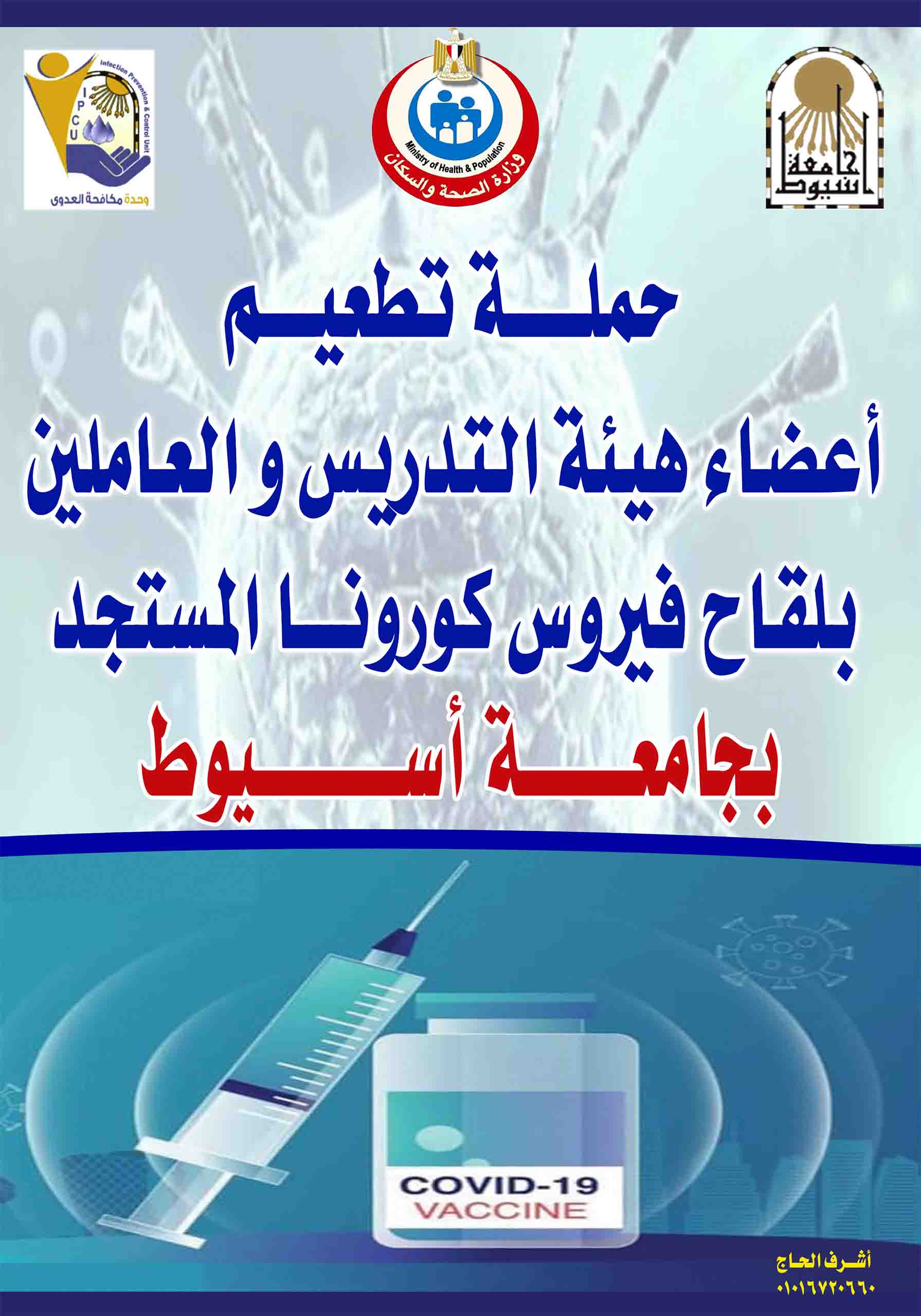 حملة تطعيم السادة أعضاء هيئة التدريس ومعاونيهم والعاملين بلقاح فيروس كورونا المستجد بجامعة أسيوط