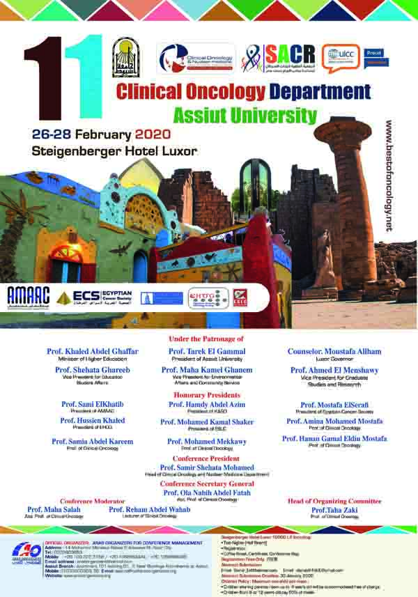 مؤتمر الحادى عشر لقسم علاج الأورام والطب النووى 31 ديسمبر 2019 في الفترة من 26 ــ 28 فبراير 2020 م الأقصر