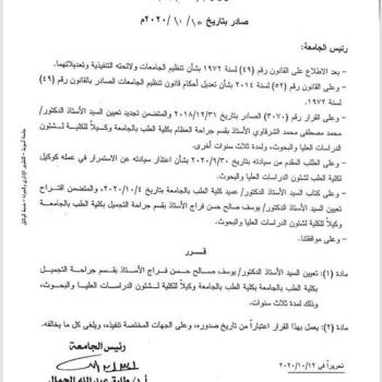 تهنئــــــة ........ تعيين الأستاذ الدكتور / يوسف صالح حسن - وكيلاً لكلية الطب لشئون الدراسات العليا والبحوث