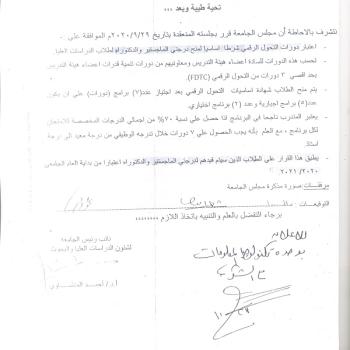 قرار إعتبار دورات التحول الرقمي شرطاً أساسياً لمنح درجتي الماجستير والدكتوراه