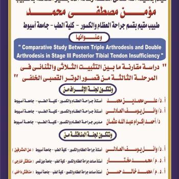 مناقشة رسالة الماجستير الخاصة بالطبيب/ مؤمن مصطفى محمد - المعيد بقسم جراحة العظام والكسور