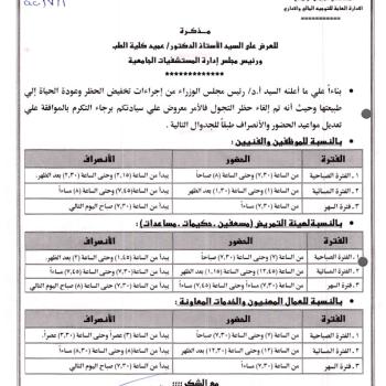 اعـــــــــلان هـــــــــــــام بتغيير مواعيد الحضور والانصراف للعاملين بالمستشفيات الجامعية