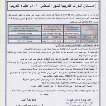 جداول الدورات التدريبية لشهر أغسطس التي تقيمها وحدة ضمان الجودة بكلية الطب