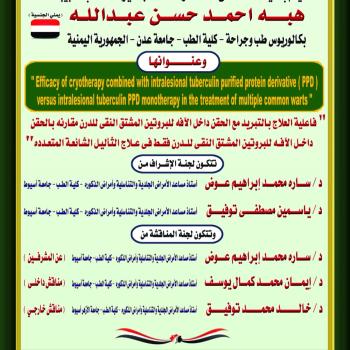 مناقشة رسالة الماجستير الخاصة بالطبيبة / هبه أحمد حسن عبد الله - قسم الجلدية جامعة عدن اليمن
