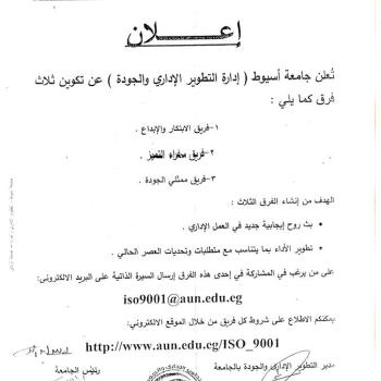 اعلان عن تطوير الجهاز الإدارى والجودة بجامعة أسيوط