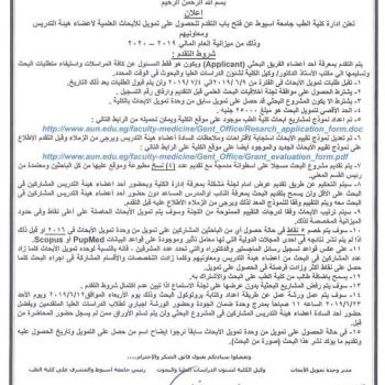 اعلان عن فتح باب التقدم للحصول على تمويل للأبحاث العلمية لأعضاء هيئة التدريس ومعاونيهم