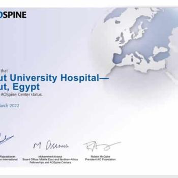 حصل قسم جراحة العظام علي الاعتماد الدولي كمركز تدريب معتمد من الجمعية السويسرية الدولية للعمود الفقري (AOSpine)