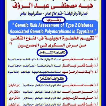 مناقشة رسالة الدكتوراه الخاصة بالطبيبة / هبه مصطفى عبد الرؤف - أخصائى الأمراض الباطنة بقسم العلاج الخاص بالمستشفى الجامعى الرئيسي