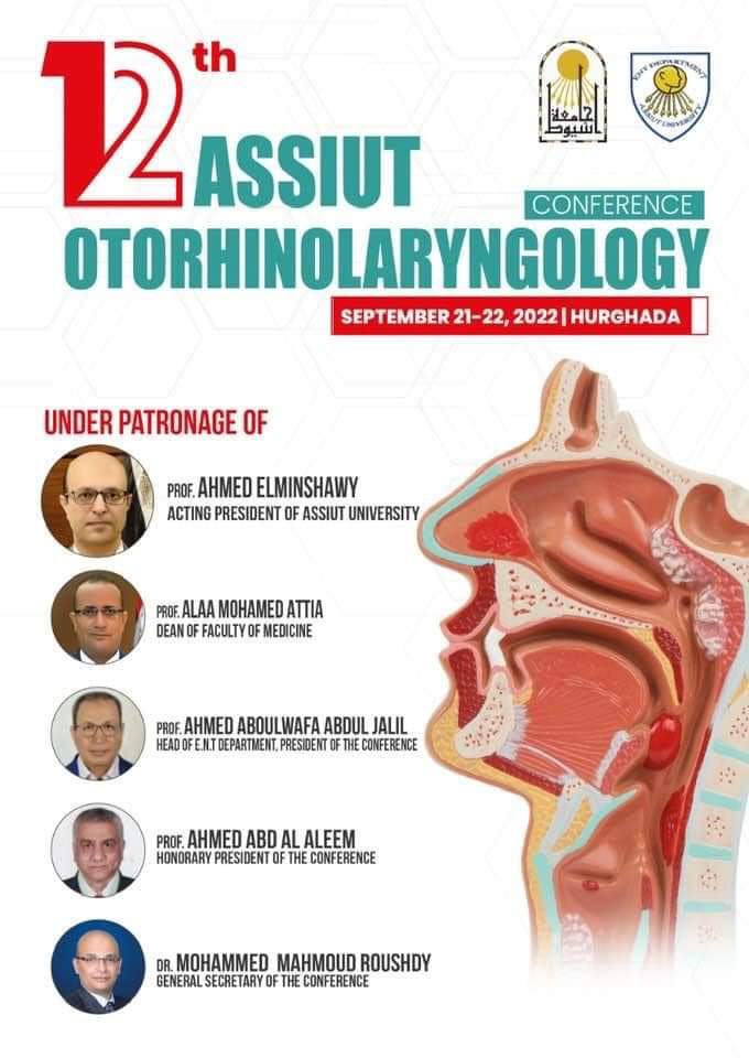 تعقد فعاليات المؤتمر الثاني عشر لقسم جراحة الأنف و الأذن و الحنجره بكلية الطب جامعة اسيوط، تحت رعاية الأستاذ الدكتور أحمد المنشاوي القائم بأعمال رئيس الجامعة، والأستاذ الدكتور علاء عطيه عميد كلية الطب ورئيس مجلس إدارة المستشفيات، والأستاذ الدكتور إيهاب فوزي المدير التنفيذي للمستشفيات الجامعية، والأستاذ الدكتور علاء عبد المنعم مدير المستشفى الرئيسي، والأستاذ الدكتور أحمد أبو الوفا رئيس القسم، والأستاذ الدكتور أحمد عبد العليم رئيس شرف المؤتمر، والأستاذ الدكتور محمد رشدي سكرتير عام المؤتمر، وذلك يوم الاثنين الموافق 19 سبتمبر القادم.