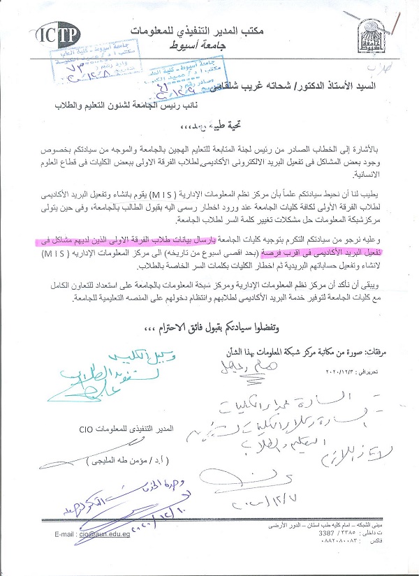 تفعيل البريد الألكتروني الأكاديمي للطلاب
