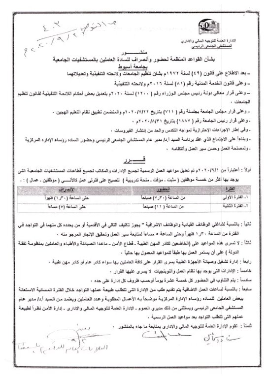 تغير مواعيد العمل الجديدة للعاملين بالمستشفيات الجامعية 2020م 2 سبتمبر 2020 تغير مواعيد العمل الجديدة للعاملين بالمستشفيات الجامعية 2020م
