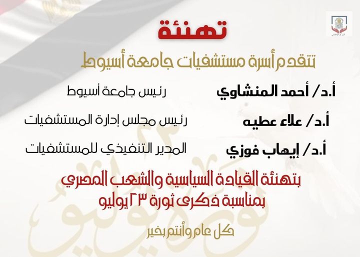 تهنئة بمناسبة ذكرى ثورة 23 يوليو