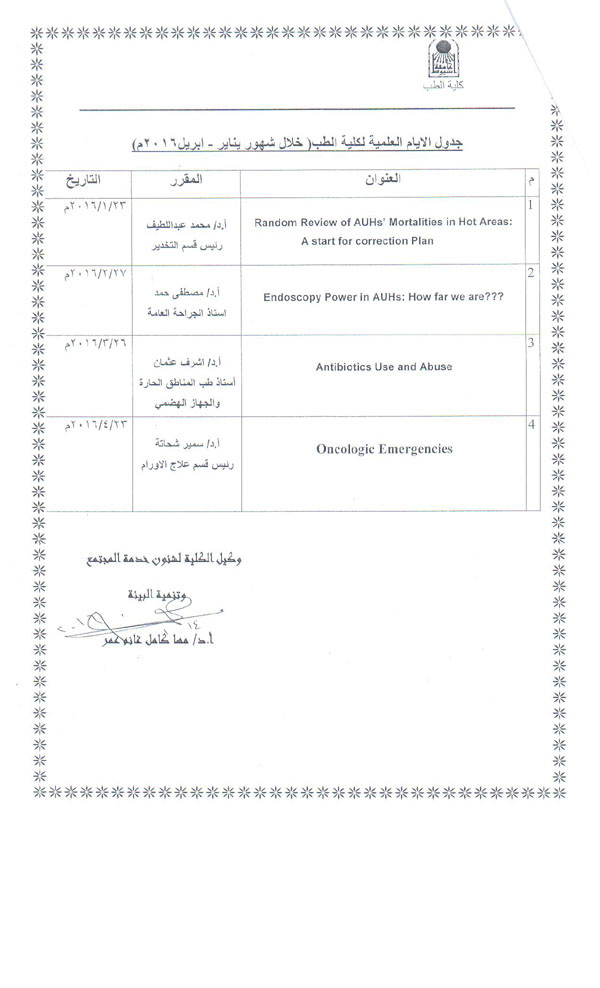 The Faculty Scientific Days Timetable