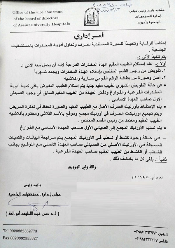 Administrative Statement about the disbursement and circulation of drugs in University Hospitals