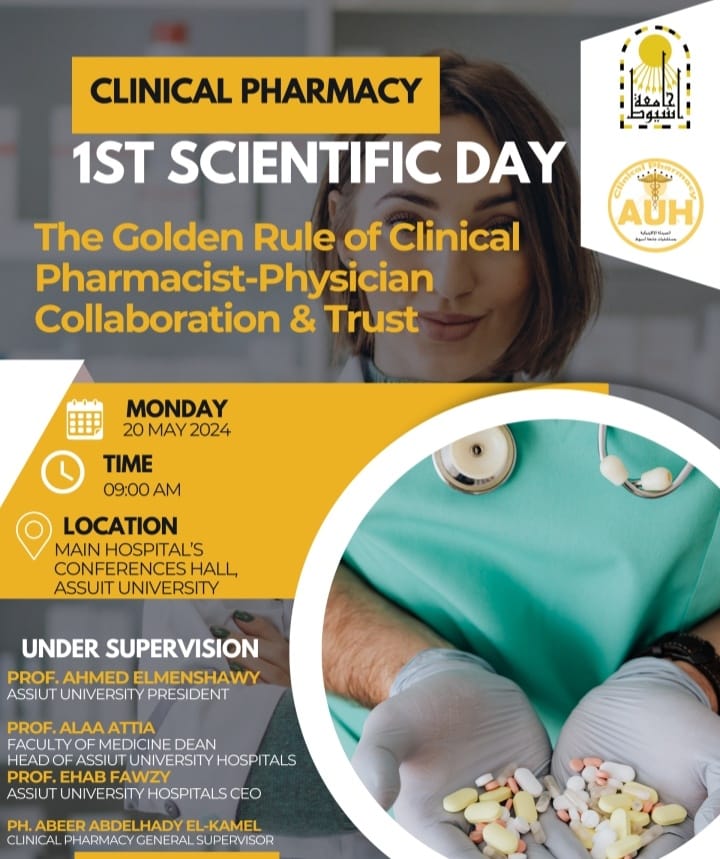 May 20 ... Assiut University Hospitals organizes the first scientific day for clinical pharmacists on integration between the roles of the doctor and the clinical pharmacist to improve medical services