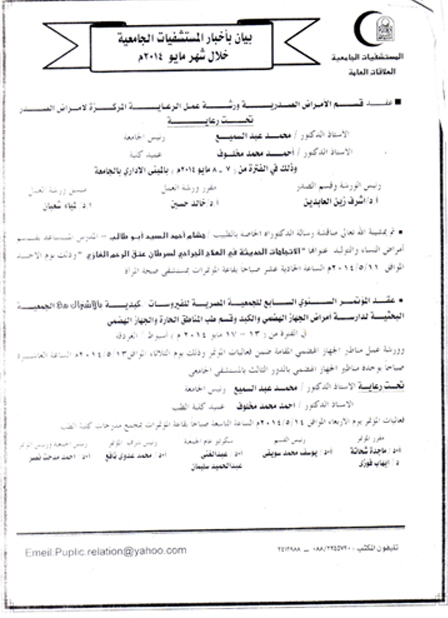 في حصادها السنوي ... مستشفيات جامعة أسيوط تعلن عن استقبال المستشفى الرئيسي (١٢٥١٨٦) مترددا بمختلف عياداته و(١٠٠٤١٧) حالة بالاستقبال و(٣٦٠٢٤) مترددا من مختلف المحافظات