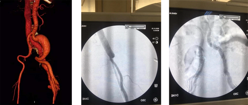 أعلن الأستاذ الدكتور/ علاء عطية - عميد الكلية عن نجاح فريق طبى بقسم جراحة الأوعية الدموية بكلية الطب جامعة اسيوط مكون من الأستاذ الدكتور/ أيمن حسب الله والأستاذ الدكتور/ أحمد حسن بكر والأستاذ الدكتور/ هيثم على حسن والأستاذ الدكتور/ محمود اسماعيل فى علاج أحد الحالات المعقدة والنادرة على مستوى العالم وهو مريض يعانى من ناسور شرياني وريدى فى الساق نتيجة طلق ناري منذ ١٥ عام وفى نفس الوقت يعانى من وجود تمدد ضخم بالشريان الحرقفى الأيسر. وتم علاج المريض بتقنية مشتركة مابين التدخل الجراحى والقسطرة التداخلية حيث تم غلق الناسور بواسطة الربط الجراحي وإستخدام ملفات حلزونية وتم التعامل مع التمدد الشريانى بواسطة القسطرة التداخلية وتركيب الدعامات المغطاة. وأوضح الأستاذ الدكتور/ مصطفى سعد - رئيس قسم جراحة الأوعية الدموية أن صعوبة الحالة فى تزامن وجود الناسور الشريانى مع التمدد الانيورزمى فى نفس الوقت وفى نفس الطرف مما يعرض حياة المريض للخطر. وتعتبر إستخدام التدخل الجراحى مع القسطرة التداخلية هى الحل الأمثل فى مثل هذه الحالات. |