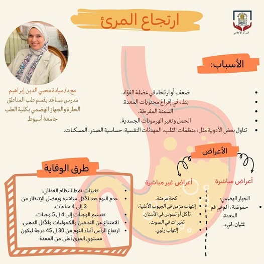 عشان تعرفوا أكتر عن ارتجاع المرئ أسبابه وطرق الوقاية منه، تابعوا حلقتنا من #برنامج_عيادتي مع الدكتورة ميادة محيي الدين إبراهيم مدرس مساعد بقسم طب المناطق الحارة والجهاز الهضمي بكلية الطب جامعة أسيوط