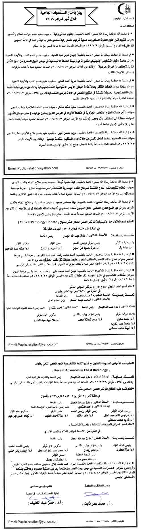 بيان بأخبار المستشفيات الجامعية خلال شهر فبراير 2019