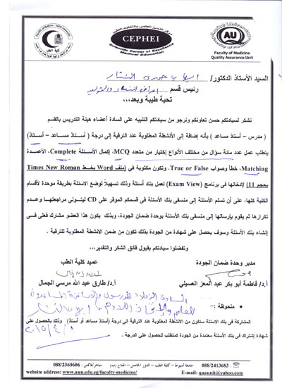 من الانشطة المطلوبة للترقية الي درجة استاذ مساعد او استاذ المشاركة في بنك الاسئلة 4 ابريل 2015 من الانشطة المطلوبة للترقية الي درجة استاذ مساعد او استاذ المشاركة في بنك الاسئلة
