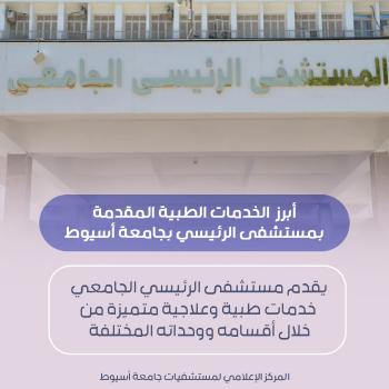 يقدم المستشفى الرئيسي بجامعة أسيوط خدمات طبية وعلاجية متميزة من خلال أقسامه ووحداته المختلفة