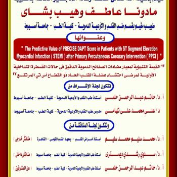 مناقشة رسالة الدكتوراه الخاصة بالطبيب / محمد أبو القاسم على موسى - مدرس مساعد بقسم طب القلب والأوعية الدموية - كلية الطب - جامعة أسيوط