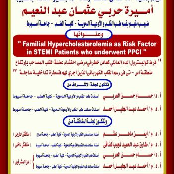 مناقشة رسالة الماجستير للطبيبة / أميرة حربى عثمان عبد النعيم - طبيب مقيم بقسم طب القلب والأوعية الدموية - كلية الطب - جامعة أسيوط