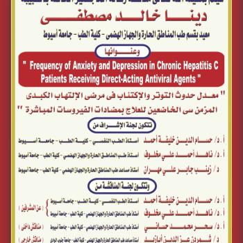 مناقشة رسالة الماجستير للطبيبة / دينا خالد مصطفى - معيد بقسم طب المناطق الحارة والجهاز الهضمى - كلية الطب - جامعة أسيوط