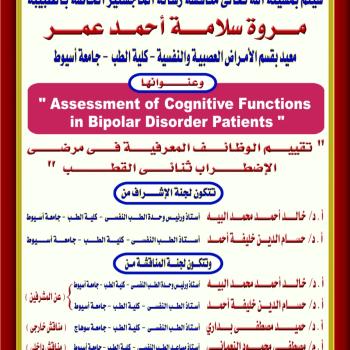 مناقشة رسالة الماجستير للطبيبة / مروة سلامة أحمد عمر - معيد بقسم الأمراض العصبية والنفسية - كلية الطب - جامعة أسيوط