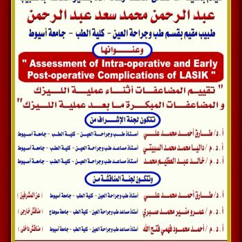 مناقشة رسالة الماجستير للطبيب / عبد الرحمن محمد سعد عبد الرحمن - طبيب مقيم بقسم طب وجراحة العين - كلية الطب - جامعة أسيوط