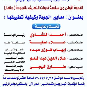 غدا .. الندوة التعريفية الأولى لتطبيق معايير الجودة تنظمها مستشفيات جامعة أسيوط المصدر: المركز…