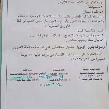 وذلك يوم الثلاثاء الموافق 21 / 3 / 2023 م الساعة العاشرة  صباحاً بقاعة الدراسات العليا تخدير -…