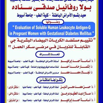 مناقشة رسالة الماجستير الخاصة بالطبيب / بولا روفائيل صدقى سنادة - معيد بقسم الأمراض الباطنة - كلية الطب - جامعة أسيوط