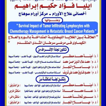 مناقشة رسالة الدكتوراه الخاصة بالطبيب / ايليا فؤاد حكيم إبراهيم - أخصائى علاج الأورام - مركز الأورام سوهاج