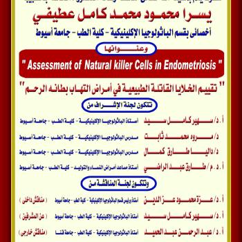 مناقشة رسالة الدكتوراه الخاصة بالطبيبة / يسرا محمود محمد كامل عطيفى - أخصائى بقسم الباثولوجيا الإكلينيكية - كلية الطب - جامعة أسيوط