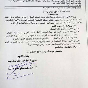 لتفعيل البريد الألكتروني الأكاديمي للسادة أعضاء هيئة التدريس ومعاونيهم
