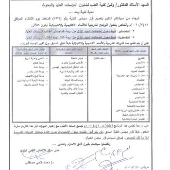 ولك يوم الأحد الموافق 2021/1/3 م الساعة الحادية عشر صباحاً بقاعة أ. د / سمير سيد عبد القادر ( MDT…