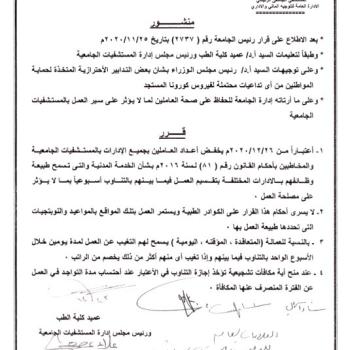 منشور بخفض اعداد العاملين بجميع الادارت بالمستشفيات الجامعية