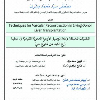 مناقشة رسالة الدكتوراه الخاصة بالطبيب / مصطفى سيد محمد مشرف - مدرس مساعد بقسم الجراحة العامة - كلية الطب - جامعة أسيوط