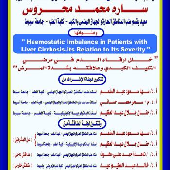 مناقشة رسالة الماجستير الخاصة بالطبيبة / ساره محمد محروس - معيد بقسم طب المناطق الحارة والجهاز الهضمى - كلية الطب - جامغة أسيوط