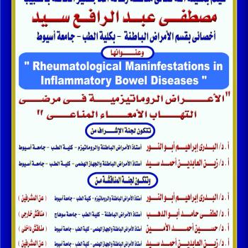 مناقشة رسالة الماجستير الخاصة بالطبيب/ مصطفى عبد الرافع سيد - أخصائى بقسم الأمراض الباطنة – كلية الطب – جامعة أسيوط