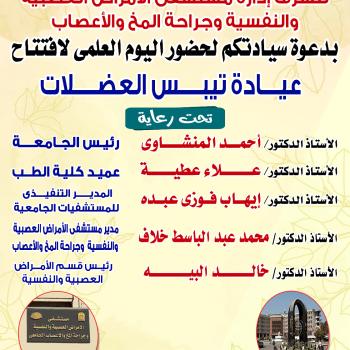 ٢٥ سبتمبر .. افتتاح عيادة تيبس العضلات بمستشفى الأمراض العصبية والنفسية وجراحة المخ والأعصاب…