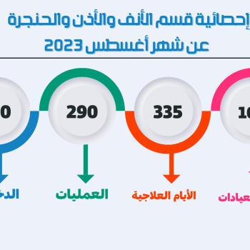 خلال شهر أغسطس الماضي.. قسم الأنف والأذن والحنجرة بالمستشفى الرئيسي بجامعة أسيوط يستقبل 1065…